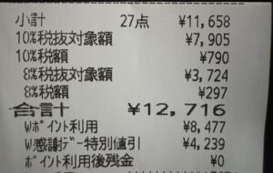 結論から言うと、約8,500ポイントを使い、約12,000円分の買い物を、現金0円で完了させた。