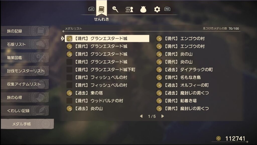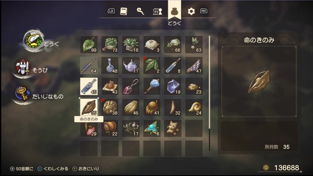 これまでは「レミラーマ」を連打して怪しい場所を調べるのがお約束だったが、今作では「町やダンジョンごとの取得リスト(コンプリート状況)」が確認できるようになり、さらに落ちている場所が最初からキラキラ光っている。